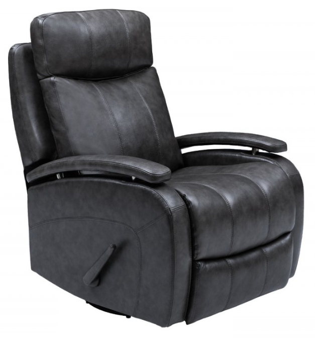Handle operated swivel glider recliner with elevated arms, articulated head rest area for full neck and head support, pad cover chaise seating with pocketed coil springs for continuous head to toe comfort. Double needle top stitch detail on back, seat and outside arm.Read More