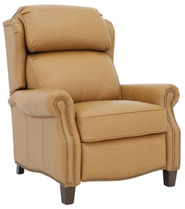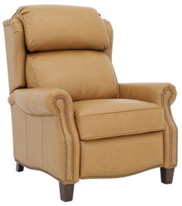 BarcaLounger® Meade Manual Recliner offers a classic wingback design in a compact size, perfect for smaller spaces. With a smooth 3-way reclining mechanism and extended footrest, it delivers comfort and support. Pocketed coil seating, copper nailhead trim, and merlot-finished wood legs add warmth, durability, and timeless style to any room.Read More