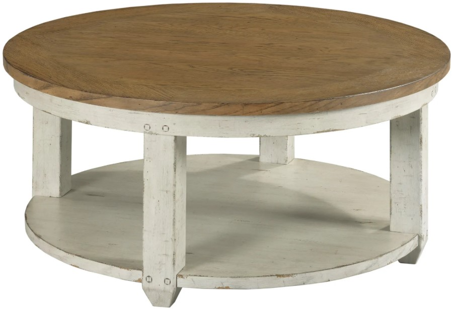 This round coffee table features a medium brown top paired with a chalk white base, combining classic warmth with modern style. Its circular design offers a functional surface for everyday use, while sturdy construction ensures durability, making it a versatile and stylish centerpiece for living spaces.Read More