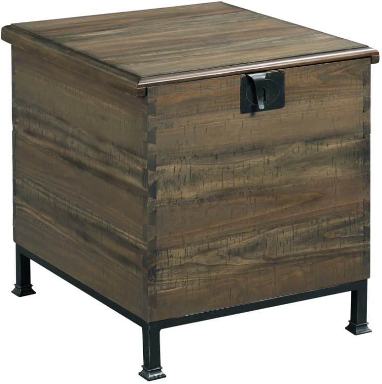 Enhance your living area with this brown milling chest end table featuring a sleek black base. Combining rustic charm with practical design, it provides a sturdy surface for décor or drinks and offers convenient storage, making it a versatile and stylish accent piece.Read More