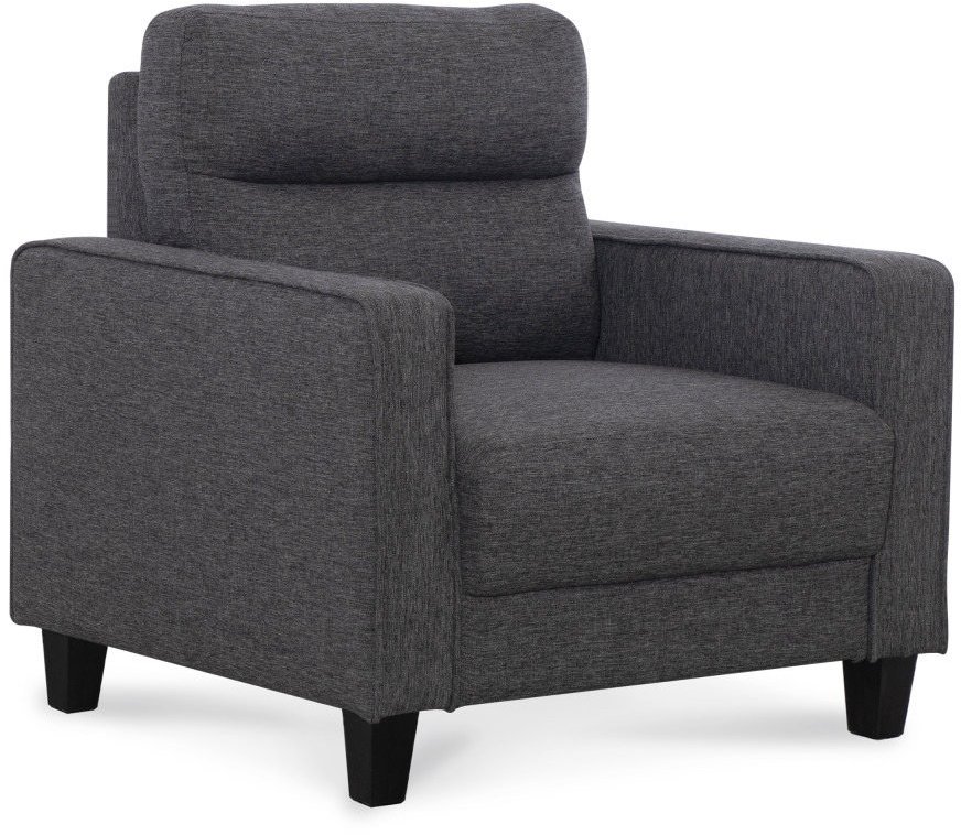 Lean back and relax in this plush Channeled Chair. A heather gray color is sure to blend with any room décor and the seams add a modern flair. 100% polyester performance fabric ensures easy cleanup in case of spills, and the back cushion is sewn-in for added support and durability. 15 minute assembly means you can start relaxing right away.Read More