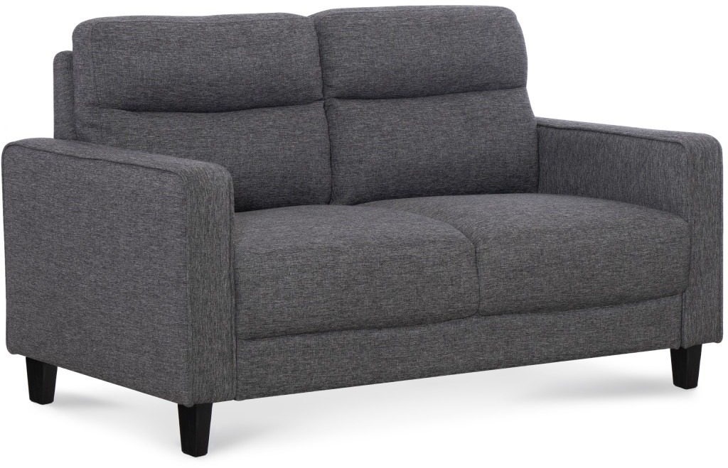 This loveseat will blend with any room décor and is a snap to assemble. 100% polyester performance fabric ensures easy cleanup in case of spills, and the back cushions are sewn-in for added support and durability. The seams add modern flare, and metal bolt construction ensures durability.Read More