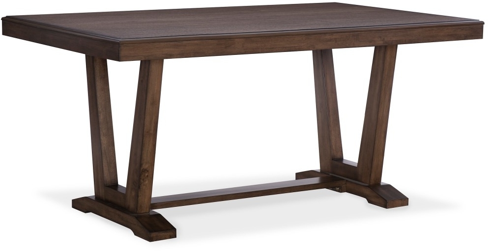 Handsomely crafted from acacia veneers in a warm walnut brown finish, this table is the perfect addition to any dining space. The fixed rectangle top features a recessed edge, while the trestle base adds a dramatic visual element.Read More
