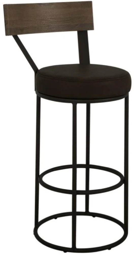 The Xel-Ha collection stool beautifully combines industrial and rustic design elements. It has a sturdy metal frame with a circular base and footrest supports, providing stability and durability. The seat is round and cushioned for comfort, while the backrest features an eye-catching wooden panel, adding warmth and character to the overall design.Read More