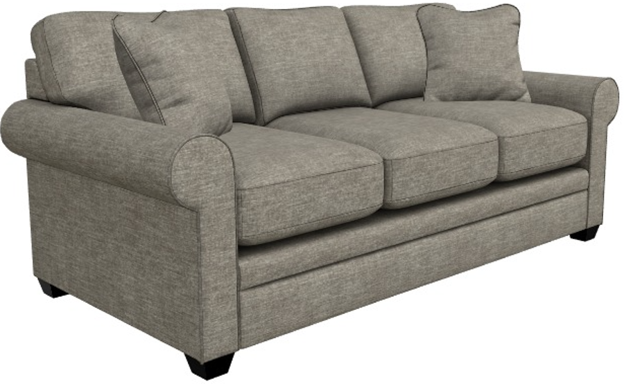Rolled arms, decorative wood legs and welt trim lend laid-back sophisticated style