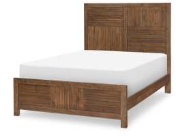 The Summer Camp Complete Full Panel Bed captures the look and feel of being away at camp. Straight lines and plank details add a modern rustic appeal to the look of this bed. The complete bed comes with the headboard, footboard, rails, and a full slat roll, so there is no need for a box spring. Crafted of select hardwood solids in a lightly distressed, treehouse brown finish.Read More