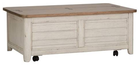Enhance your space with the Farmhouse Reimagined storage trunk. Crafted of pine and poplar solids with pine and cathedral hickory veneers, this piece features an antique white finish with a chestnut top and an appealing cedar lined interior with ample storage and a removable storage tray inside.Read More
