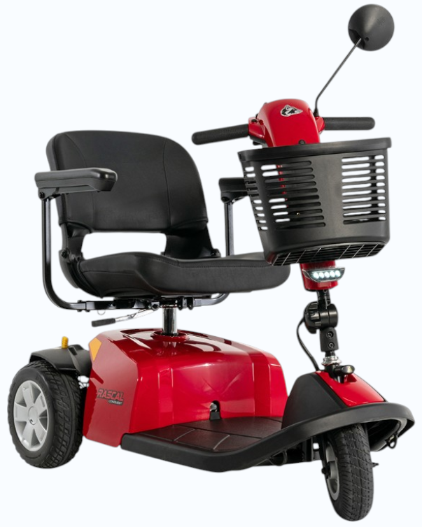 Durability and maneuverability to meet your needs, turn to the Rascal® Conquest 3-Wheel mobility scooter. Its three 10-inch solid tires help you make tight turns to confidently navigate narrow environments, while a 350-lb. weight capacity and battery range of up to 15.4 miles will keep you powered throughout all the day’s activities.Read More
