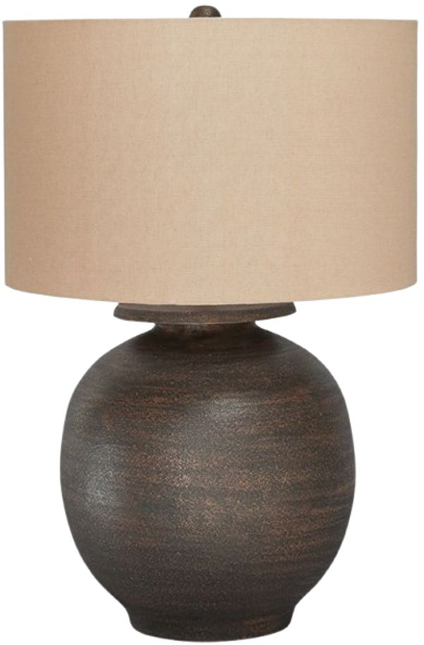 Brighten up your space with the casual, earthy elegance of this lamp. Outfitted in an antiqued brown hue, its simple curved form ushers in an air of effortless beauty when placed on an accent table or desk.Read More