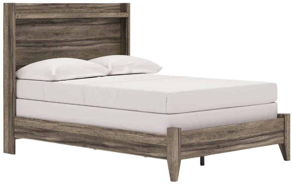 Rest in the casually cool style of this full panel bed. A weathered brown finish and chill LED lighting create an easygoing vibe, setting the scene in your restful retreat. The bed's clean-lined design provides a fuss-free look.Read More