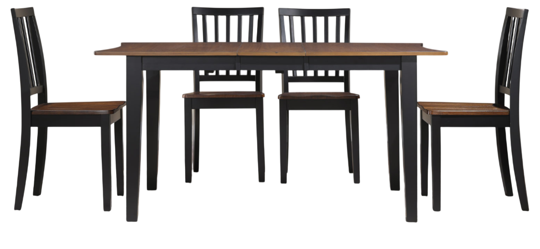 The 5-piece set includes the Joplin 50-62″ Dining Table with 12-inch leaf and four Joplin Side Chairs. Each item also sold separately.