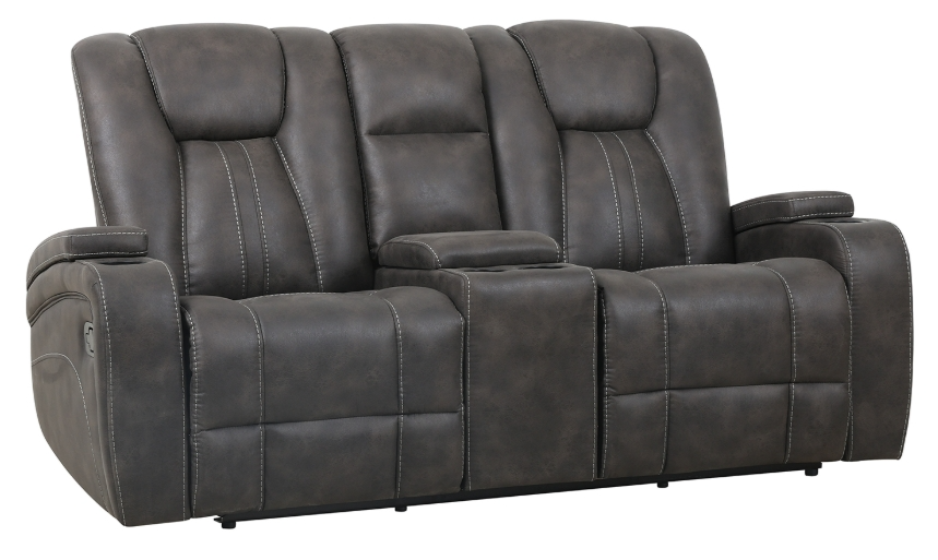 Upgrade your living room command center with the Marlow manual console loveseat. Designed for shared comfort, dual manual recliners let you kick back with ease, while plush cushioning and detailed baseball stitching deliver standout style.Read More