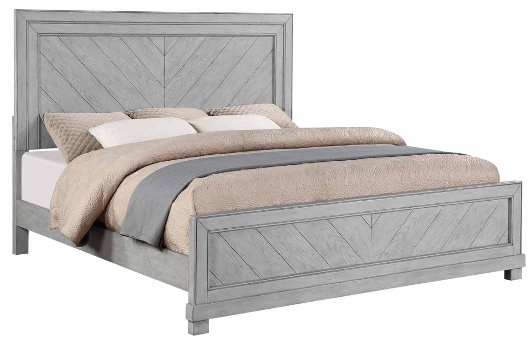 Relaxed and rustic, the Montana king bed brings casual style to today’s bedroom. A neutral soft gray finish complements most interiors with a primitive design that offers simple sophistication with details like a framed chevron patterned headboard and footboard.Read More