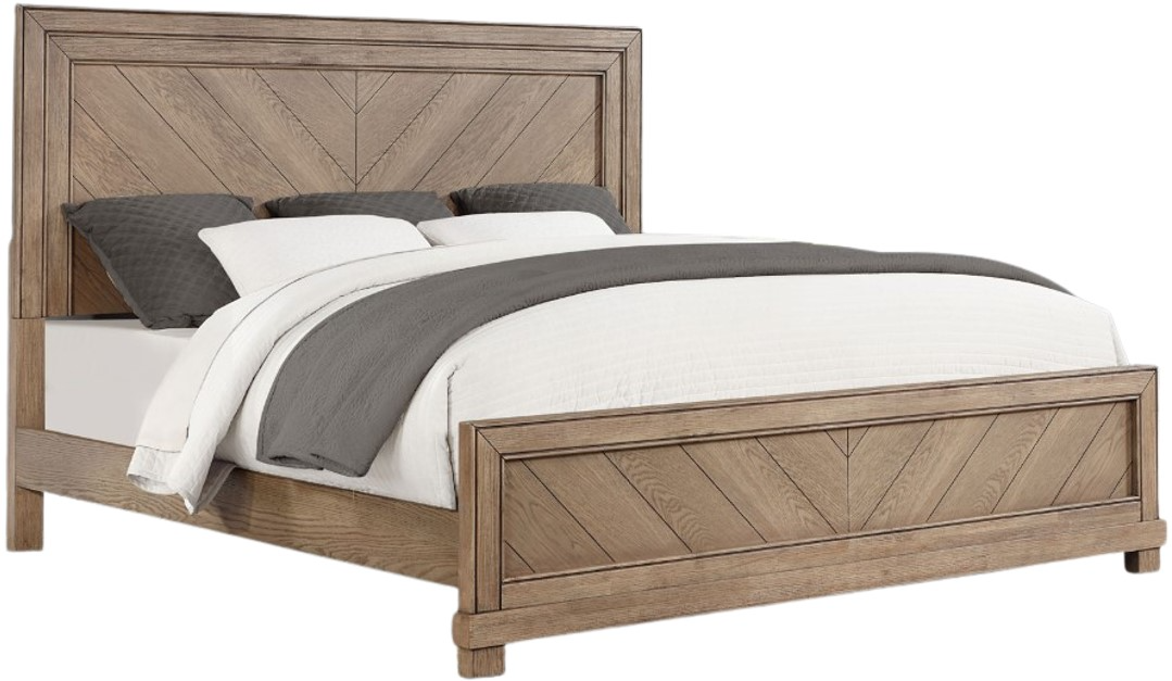 Chevron pattered Headboard with double windowpane edge creates a substantial look