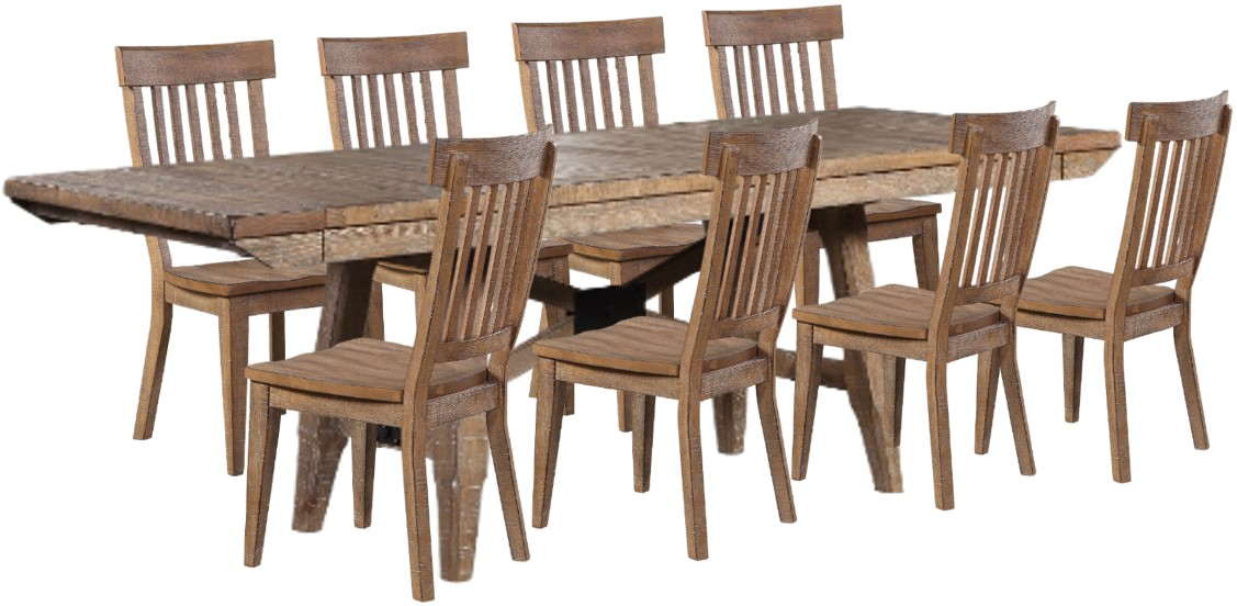 Rustic Ranch styling in a distressed dining package that is built to fit a large crowd. The dining table expands to a full 96" with two 12” leaves inserted and seats up to 10. The table is heavily distressed with saw rasping for an heirloom feel and delightfully casual appearance.Read More