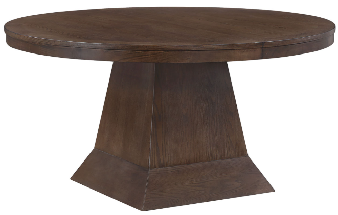Grand in presence and timeless in design, the Vaughn 60–96" Dining Table with two 18" leaves is a true centerpiece for any dining space. Finished in warm Coffee, its bold pedestal base showcases the natural beauty of the wood while providing exceptional stability.Read More
