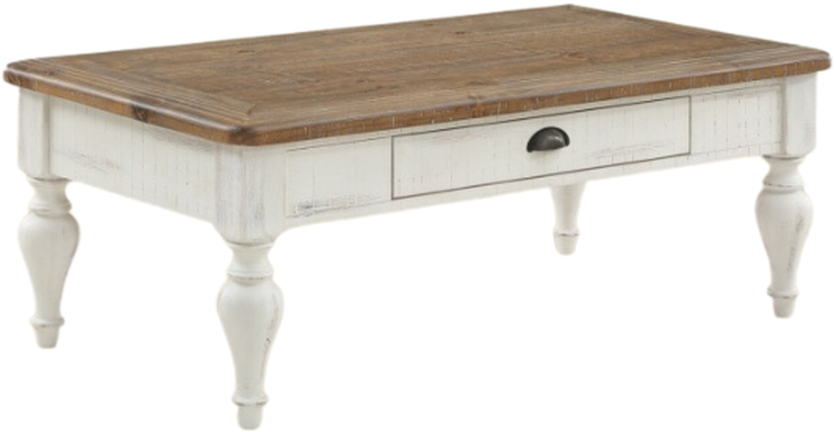 Winners Only® Augusta Rustic Brown/White 48" Coffee Table features solid hardwood and pine veneer, english dovetail drawer construction and ball bearing drawer glides.Read More
